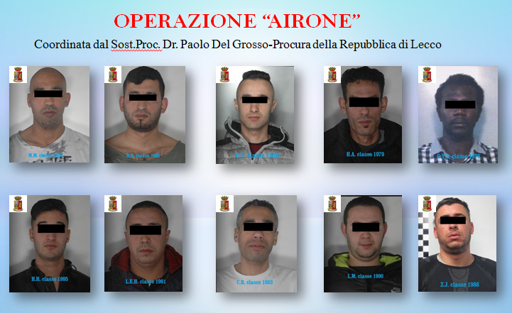 AIRUNO – Nuovo duro colpo assestato dalla Squadra Mobile allo spaccio di cocaina nel lecchese: dieci soggetti sono stati arrestati nell’ambito dell’operazione “Airone”, così chiamata perché i pusher si erano stanziati principalmente ad Airuno per poi estendere la propria illecita attività anche in altri comuni dell’hinterland lecchese e nel capoluogo, su territori di spaccio lasciati liberi da altre organizzazioni rivali.