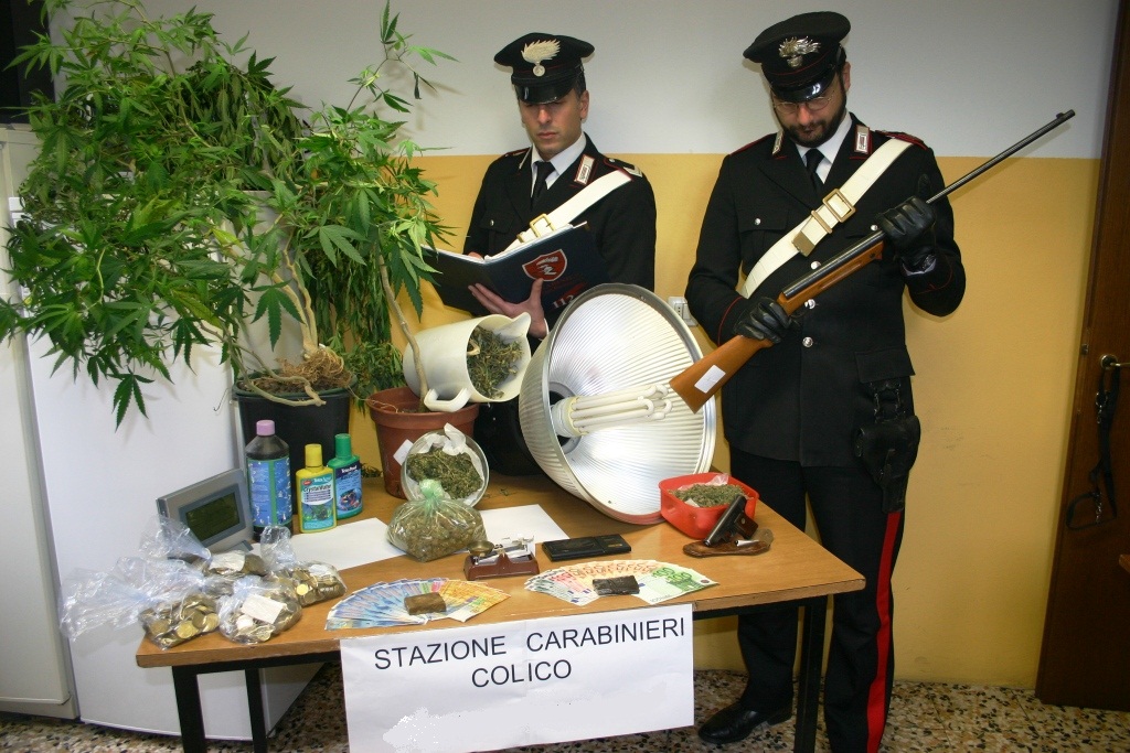Al termine della prolungata e minuziosa attività di polizia giudiziaria, i Carabinieri di Colico hanno proceduto al sequestro di tutta la droga rinvenuta, dei denari provento dell’attività illecita, del materiale pertinente al reato, cioè l’intera serra, i bilancini ed il materiale per il confezionamento della droga, nonchè delle armi e munizioni rinvenute, ed hanno dichiarato in stato di arresto il predetto cittadino svizzero con le accuse di coltivazione e detenzione ai fini di spaccio di sostanze stupefacenti e detenzione illegale di arma clandestina e del relativo munizionamento.