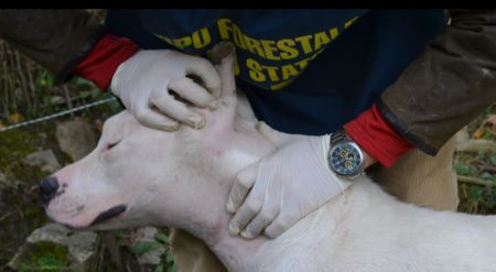 Rinvenuto anche un esemplare adulto di Dogo Argentino con evidenti cicatrici recenti, trattate chirurgicamente e compatibili con gli eventi documentati. Il Dogo argentino e’ un cane selezionato nella prima metà del ‘900, in Sud America, per cacciare cinghiali e puma, cane dalla grande potenza fisica, pacifico con gli esseri umani, ma dotato di grande istinto predatorio tale da renderlo spietato al cospetto di altre specie individuate come prede. Le possenti mandibole una volta serrate sulle prede si aprono solo con utilizzo di appositi strumenti appuntiti, utilizzati dagli addestratori anche negli eventi documentati dal Corpo forestale dello Stato in Provincia di Pesaro Urbino. I responsabili di questi gravi crimini perpetrati a danno degli animali, rischiano le pesanti pene che prevedono la reclusione da uno a tre anni e multe fino a 160mila euro per il reato di maltrattamento, uccisione e combattimento fra animali.