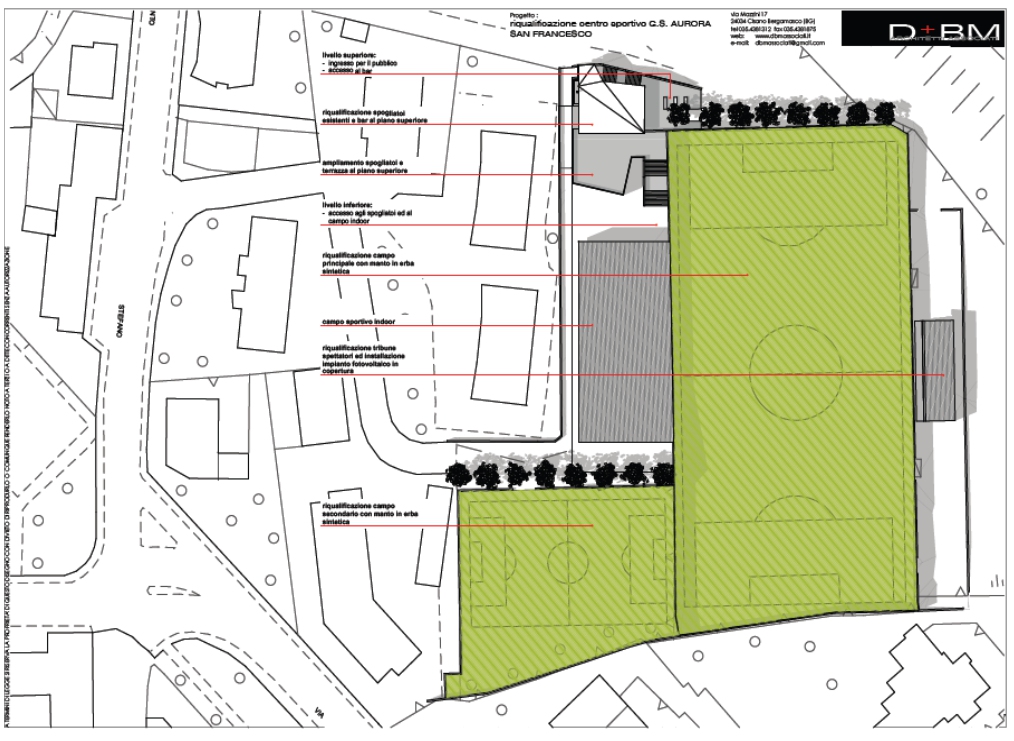 Un campo di calcio a 11 e uno da calcetto entrambi in erba sintetica, una sala polifunzionale e un bar con ampia vetrata che dà sul terreno di gioco. Un progetto ambizioso quello che il Gruppo Sportivo Aurora San Francesco ha presentato la scorsa settimana alla cittadinanza.