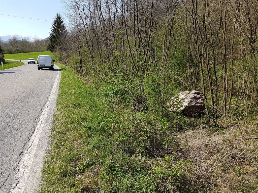 Il masso ha fatto capolino oltre il bosco nel tratto di provinciale situato poco dopo la via Trento che porta a San Pietro, a meno di un chilometro dall’area interessata dalla disastrosa frana di Bindo, avvenuta nel dicembre del 2002.