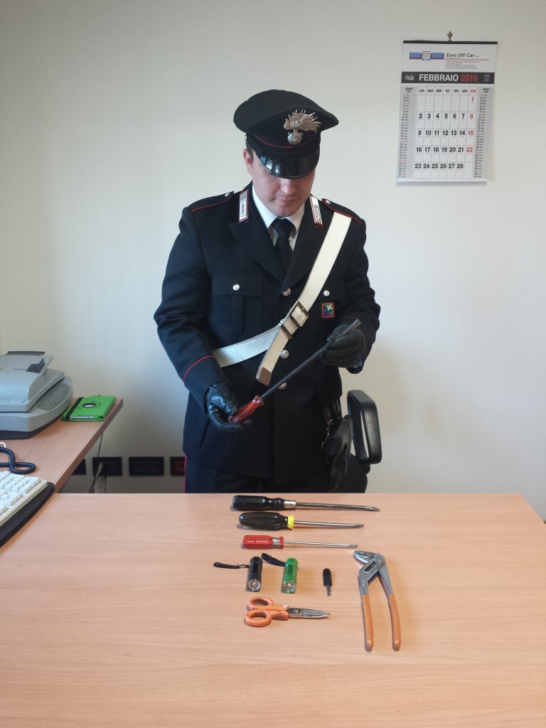 Addosso nascondevano quattro grossi cacciaviti di diverse misure, una chiave a pappagallo, una forbice, nonché uno “spadino” con impugnatura fatta con nastro isolante di colore nero e lama seghettata.