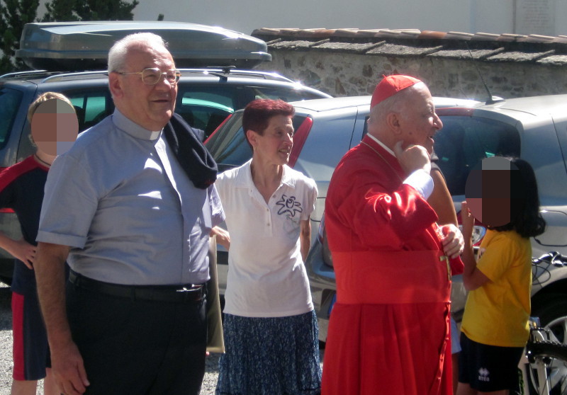 Qui sotto, don Pino con il Cardinale Dionigi Tettamanzi