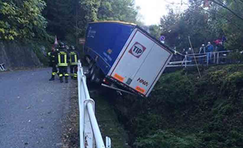 DERVIO – Dalle 4.5 di giovedì mattina a Dervio sono in corso delle difficili operazioni per rimuovere dalla strada un camion che si è incastrato su uno dei tornanti di via Valvarrone, in località Castello, finendo con il rimorchio fuori strada e bloccando la viabilità lungo la strada provinciale.
