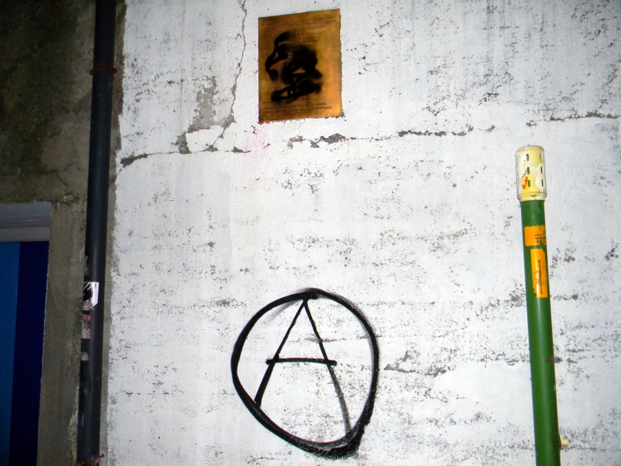 Il movimento anarchico, stando alla “firma” che ne rivendica l’atto, ha colpito ancora e ancora una volta l’obiettivo preso di mira è stata la targa bronzea di via Pascoli, situata sul muro di cinta dello Stadio Rigamonti Ceppi. Targa che ricorda i repubblichini fucilati dai partigiani il 28 aprile del ’45 .