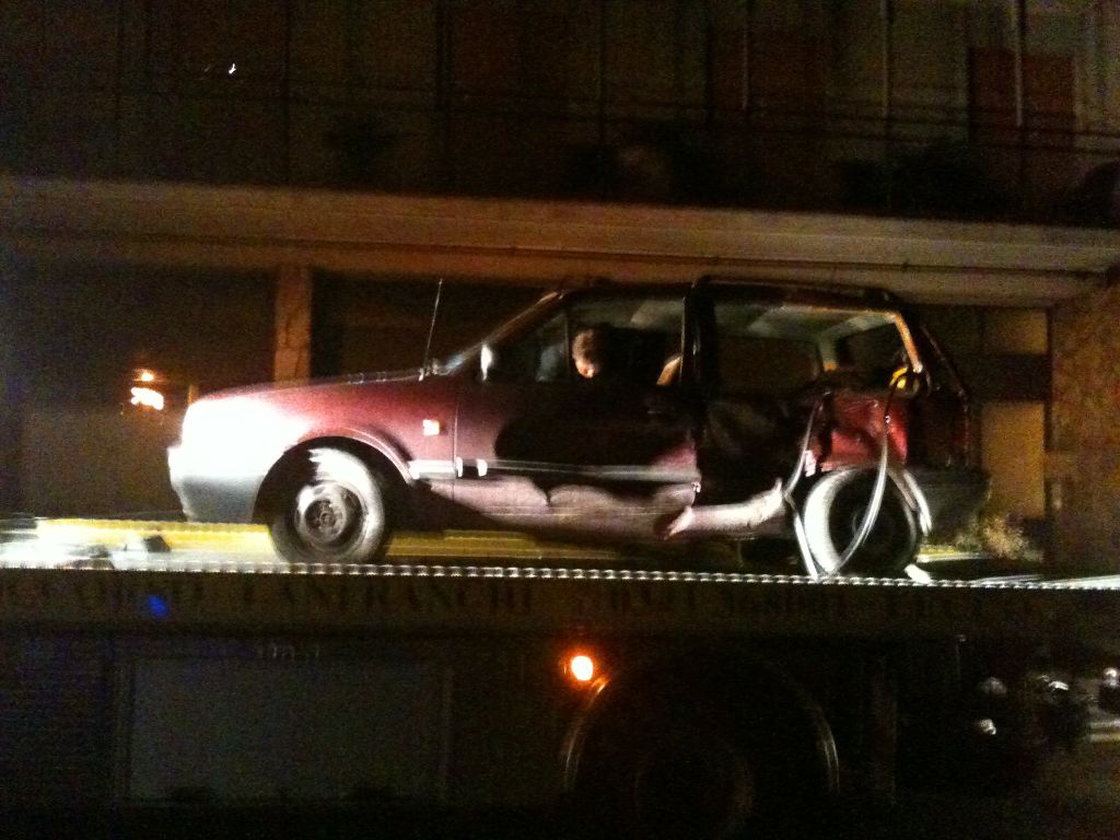 Sopra, l’immagine della vettura già caricata sul carro attrezzi