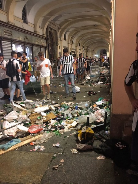 TORINO – Una transenna che cade o forse lo scoppio di alcuni petardi, la paura di un attentato ed il panico che dilaga. Oltre trentamila tifosi radunati in piazza San Carlo a Torino per la finale di Champions League che cominciano a scappare, cercando di correre, calpestando chi nella concitazione cade. In pochi minuti la piazza si svuota, restano a terra oltre 1500 feriti (ma la cifra sale di ora in ora), sangue e oggetti persi.