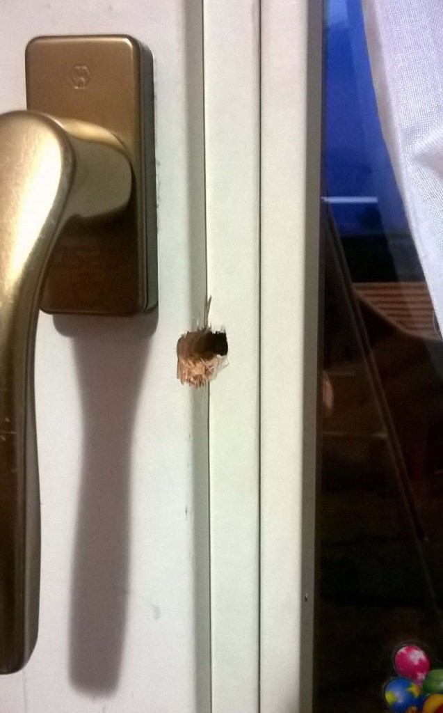 “La prima volta è successa lo scorso sabato – spiega capofamiglia – erano circa le 3.30 della notte, dormivamo tutti, io, mia moglie e i miei due bimbi. Ad un certo punto siamo stati svegliati dalla sirena dell’allarme, sono andato a controllare e ho visto la finestra aperta con un foro accanto alla maniglia”.