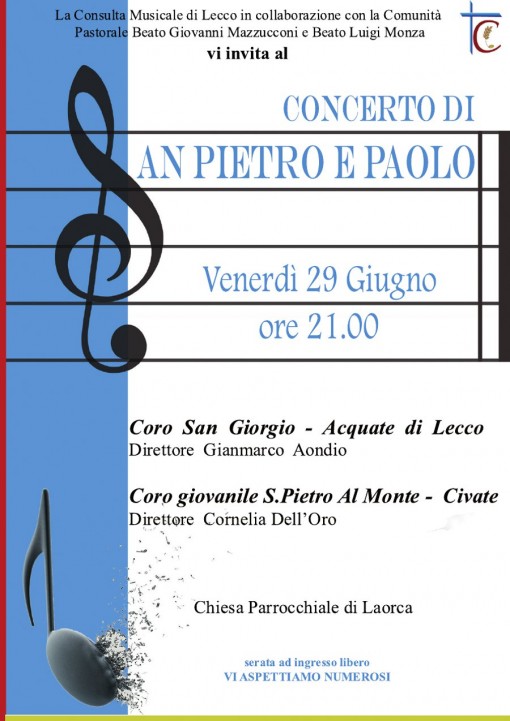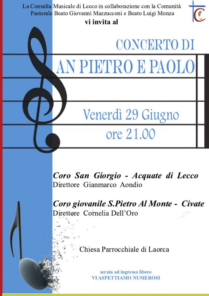 LECCO – In occasione della festa patronale dei Santi Pietro e Paolo di Laorca, la parrocchia ha organizzato un concerto che si terrà presso la chiesa dedicata ai santi venerdì 29 giugno alle 21.