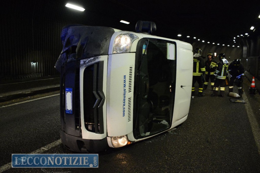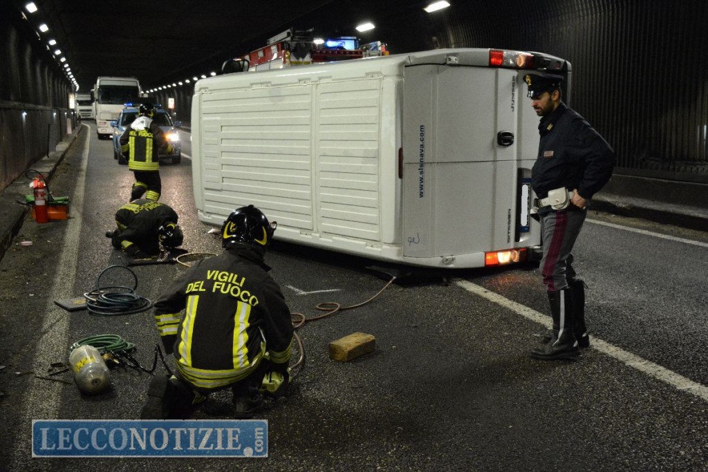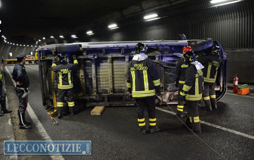 BALLABIO – Incidente con un mezzo ribaltato nella galleria Valsassina lungo la nuova Lecco – Ballabio.
