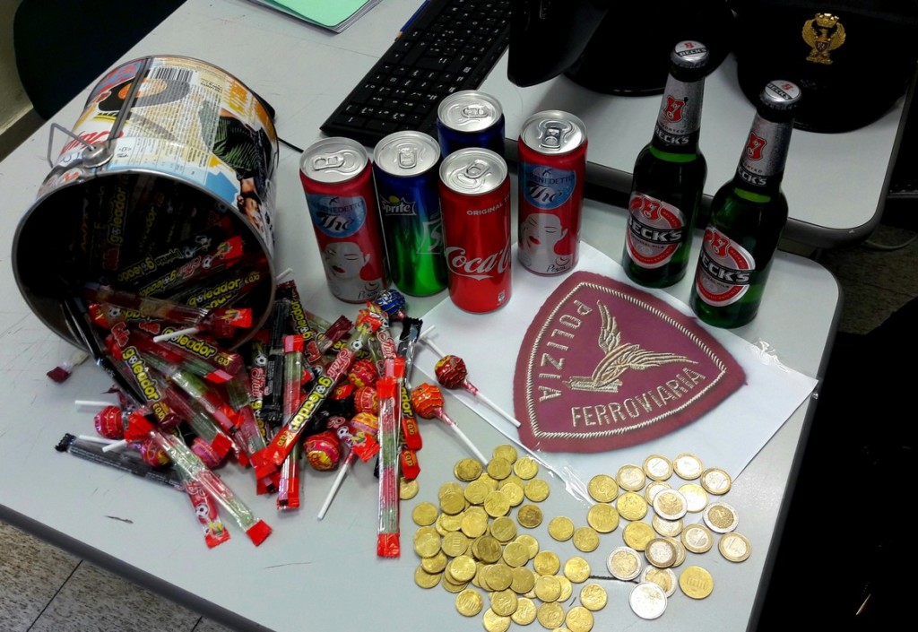 Sabato, personale della Polfer, intorno alle 6:50, ha controllato due giovani, un ragazzo e una ragazza, che alla vista delle divise avevano tentato di dileguarsi ma i due non sono passati inosservati e sono stati sorpresi con un secchiello di latta pieno di caramelle di tutti i tipi, svariate lattine di bibite e bottiglie di birra, circa 50 euro in contanti. I due giovani hanno poi ammesso di aver sottratto la merce in un bar di Mandello del Lario durante la notte precedente, al cui titolare è stata restituita la refurtiva, del valore complessivo di circa 200 euro. I due, entrambi sedicenni, la ragazza originaria dell’Ecuador mentre lui nato in Bolivia, con precedenti penali per reati contro la persona e contro il patrimonio, sono stati denunciati per furto aggravato in concorso.