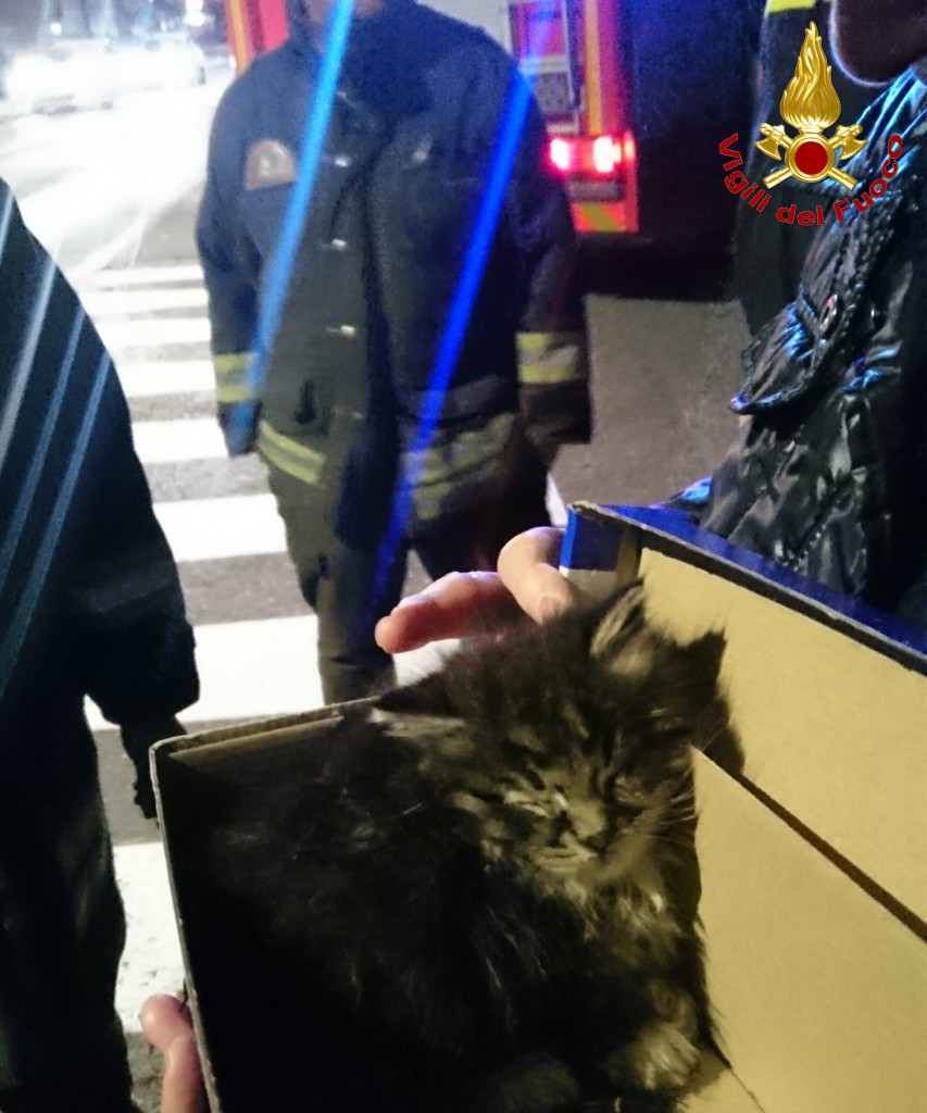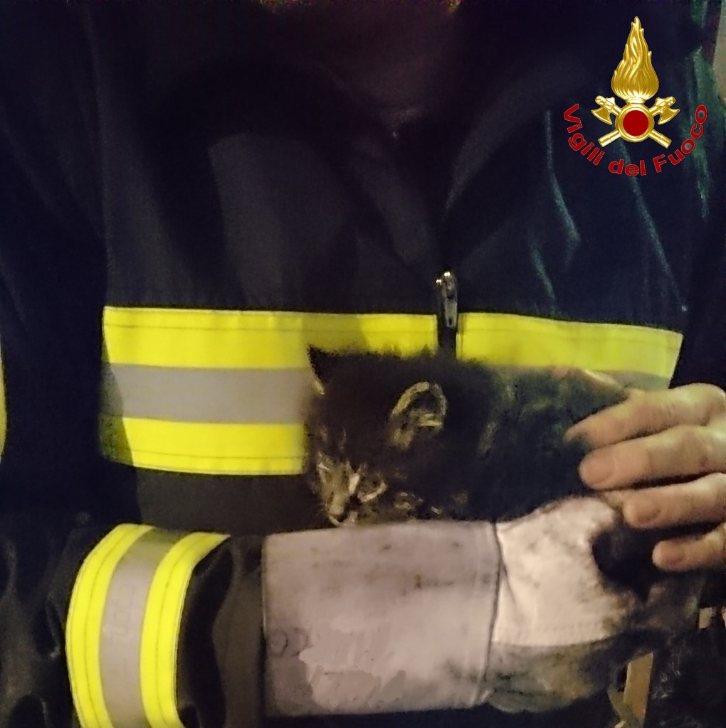 I pompieri si sono calati con una scala nel cunicolo riuscendo a raggiungere il piccolo felino, infreddolito ma fortunatamente illeso. La squadra intervenuta lo ha restituito alle cure della donna.