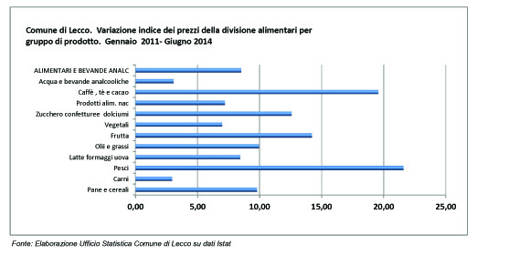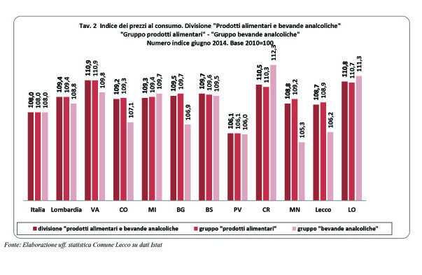 LECCO – L’Ufficio Statistica del Comune di Lecco, nell’ambito della rilevazione prezzi al consumo condotta mensilmente, ha realizzato un approfondimento sull’andamento dell’indice dei prezzi a livello locale della divisione “Prodotti alimentari e bevande analcoliche” a partire dal gennaio 2011 (base 2010) e l’ha confrontato con quello delle dieci province lombarde che effettuano la rilevazione dei prezzi al consumo; sono escluse, pertanto, Sondrio e Monza Brianza.