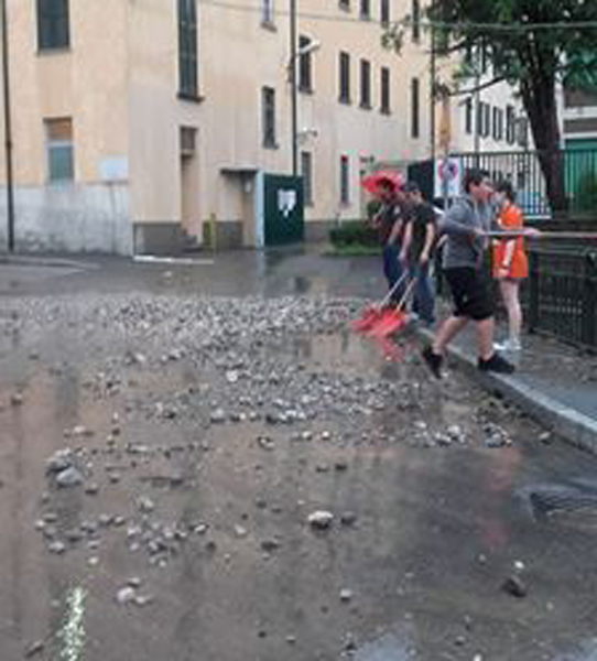 Nelle foto, pubblicate da una lettrice, i giovani del rione sono impegnati nel ripulire via Airoldi e Muzzi, in prossimità dell’omonima casa di riposo.
