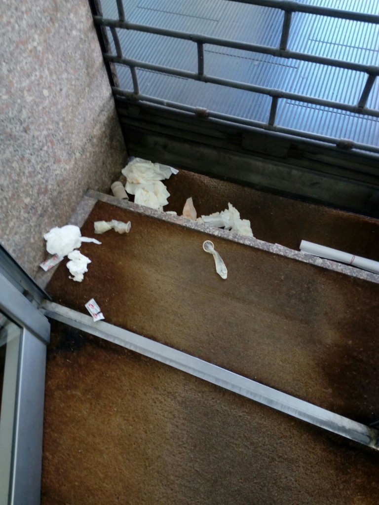 Non rifiuti ‘normali’, le foto sono eloquenti, bensì diversi profilattici usati e gettati insieme ad una busta oltre la saracinesca del locale. “Ho già segnalato quanto accaduto al Comune – prosegue Battistini – ora che la piazza e dintorni sono sorvegliati dalle telecamere – in tutto 17 apparecchiature – voglio vedere se il responsabile, o i responsabili, di questo gesto non siano stati ripresi”.