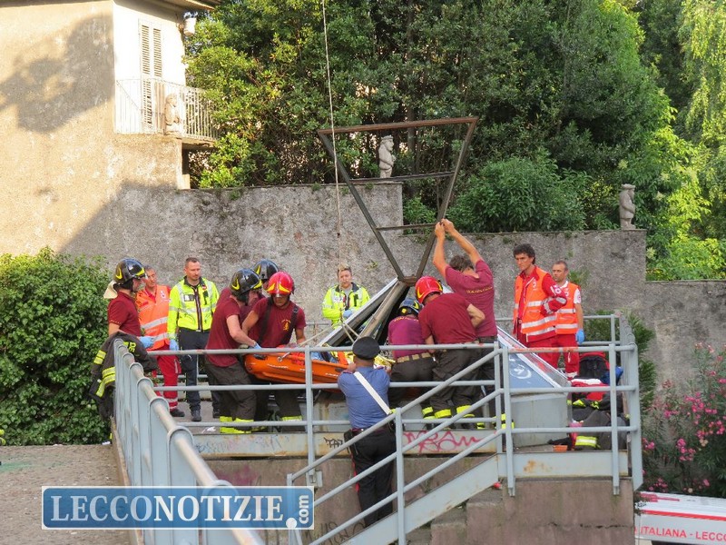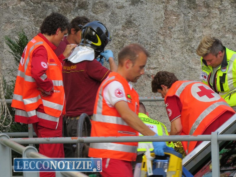 Vigili del Fuoco e personale sanitario sono intervenuti per soccorrere il ferito, prima calando una scala e permettendo ad un medico di prestargli le prime cure; poi è stata fatta scendere una barella che, caricato il giovane, è stata risollevata con l’autoscala dei pompieri.