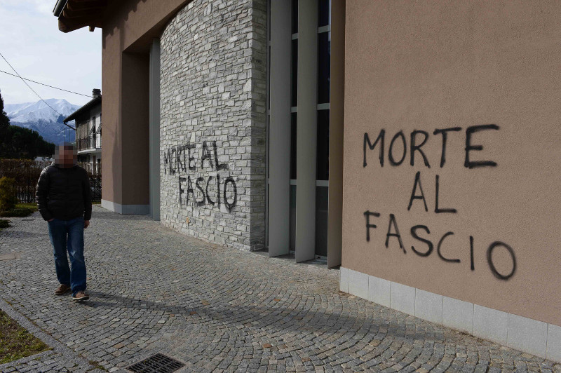 COLICO – Uova piene di vernice rossa e nera lanciate contro l’Auditorium di Colico e scritte realizzate a caratteri cubitali con vernice nera “Morte al fascio”.