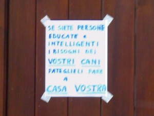 LECCO – Non è il primo e non sarà certo nemmeno l’ultimo della serie. Fa davvero pensare, e per fortuna anche un po’ sorridere, il continuo proliferare di cartelli e manifesti scritti da qualche cittadino con i quali si cerca di apostrofare qualche proprietario maleducato di animali.