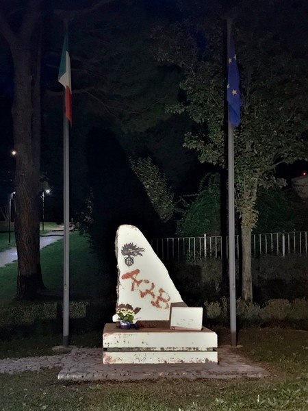 La segnalazione arriva da un cittadino che commenta: “un ennesimo atto di vandalismo, che tristezza e nervoso”. La centralissima zona, infatti, non è nuova a inciviltà, in passato erano stati sradicati degli alberelli, nonché divelti ed abbandonati i cestini dell’immondizia del parco (vedi articolo qui), nella notte fra domenica e lunedì invece è comparsa la scritta contro le Forze dell’Ordine.