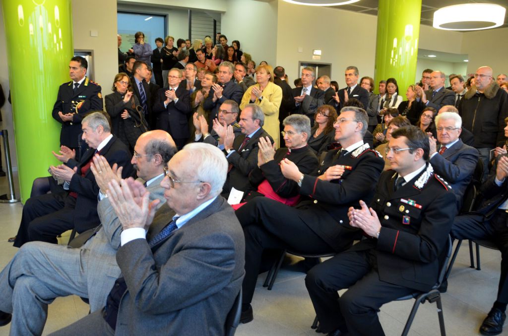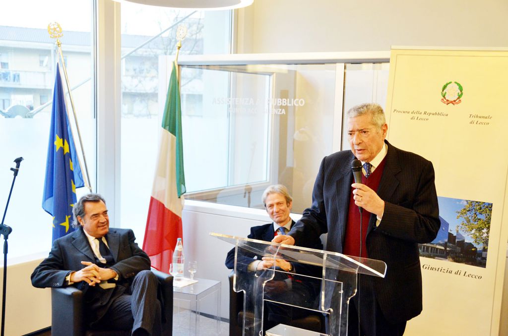 della sede provvisoria giudiziaria vi erano ovviamente il presidente del tribunale di Lecco Renato Bricchetti, il procuratore della Repubblica Tommaso Buonanno, il sindaco di Lecco Virginio Brivio, il presidente della Camera di Commercio Vico Valassi, il questore Fabrizio Bocci e i comandanti delle forze dell’ordine.