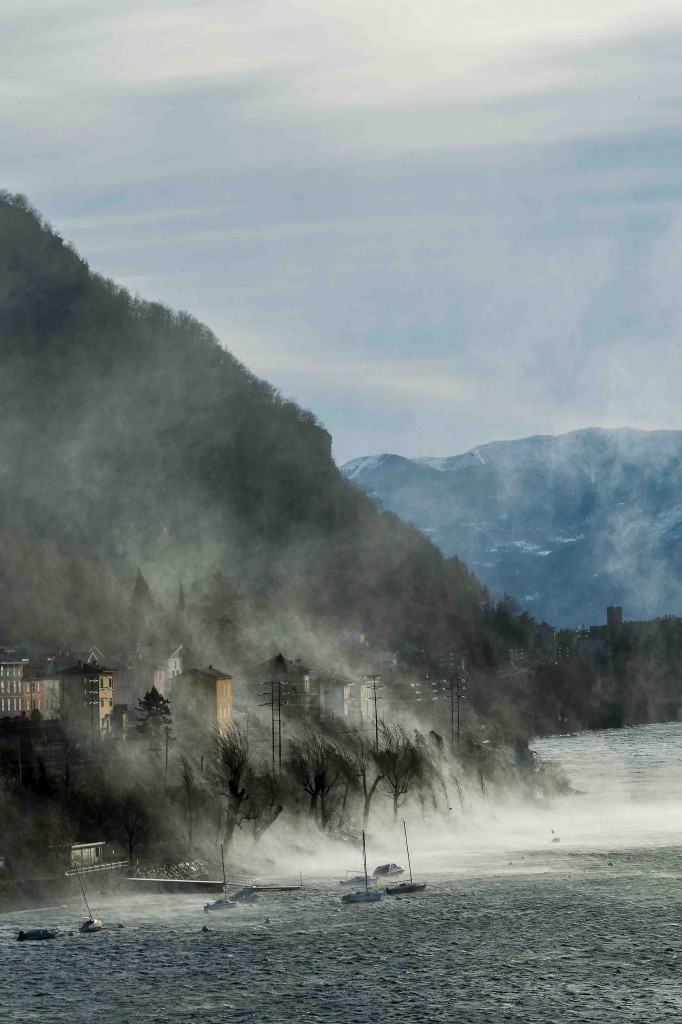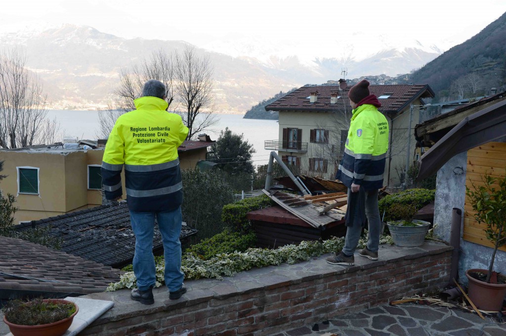 La forza delle raffiche è riuscita a scoperchiare il tetto di un’abitazione affacciata al lago e alla provinciale 72, scaraventando il materiale sulla copertura di un altro immobile alle sue spalle.
