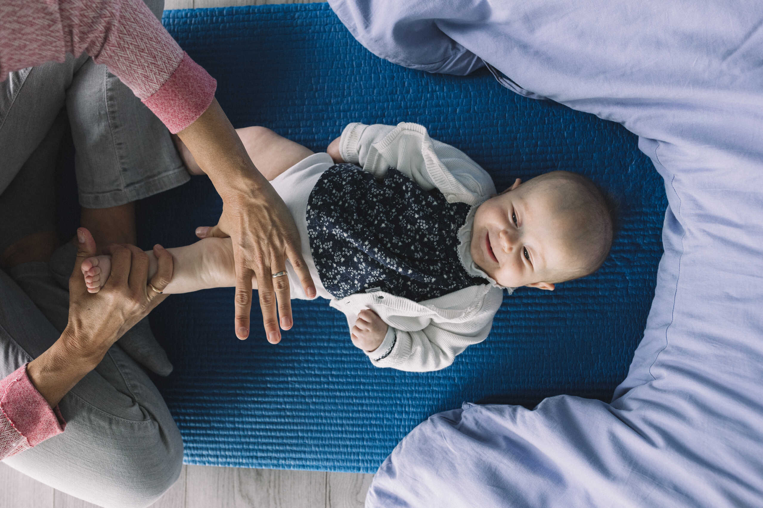 L’abbraccio dell’utero in gravidanza continua nel corso del Massaggio neonatale dove mamma e bambino si ritrovano in un contatto che diventa relazione dolce, lenta, silenziosa.