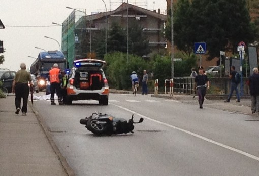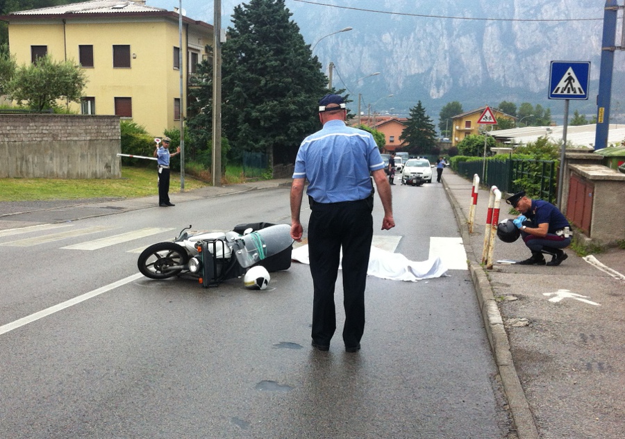 VALMADRERA – Un incidente mortale si è verificato, questa mattina, in via Promessi Sposi a Valmadrera. Erano circa le 11 quando il postino del paese, Claudio Lacerra, a bordo del suo scooter, stava risalendo il viale e si apprestava a svoltare in direzione del bar “Dos Loucos”; nello stesso momento, dalla direzione opposta, sopraggiungeva un altro motociclista A. Riva poco più che sessantenne residente in paese che, per motivi ancora da accertare, ha perso il controllo del proprio scooter ed è caduto rovinosamente a terra, probabilmente scontrandosi con il mezzo del portalettere. Nella caduta, stando alle prime ricostruzioni dell’incidente, un pezzo della visiera del casco indossato dal sessantenne pare gli abbia reciso la gola senza lasciargli scampo.