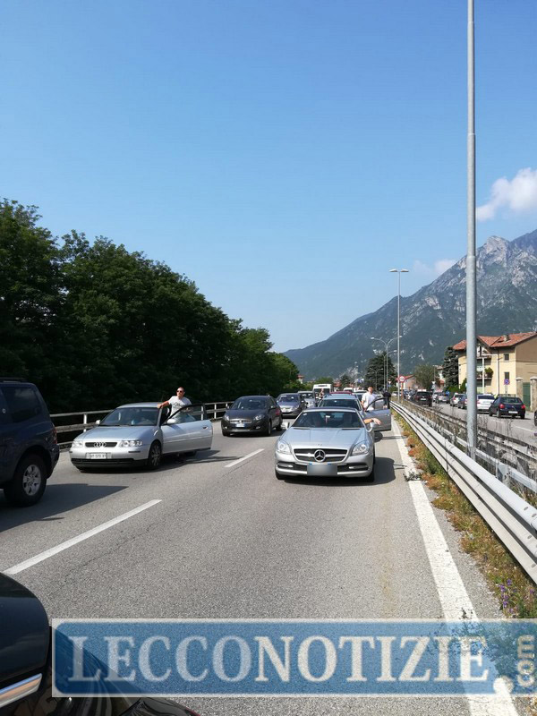 LECCO – Incidente e code questa mattina, sabato, sulla provinciale a Malgrate: il sinistro ha coinvolto un auto e una moto sulla quale viaggiavano papà e figlio, di 57 anni il genitore e 13 anni il ragazzino, rimasti feriti nell’accaduto.