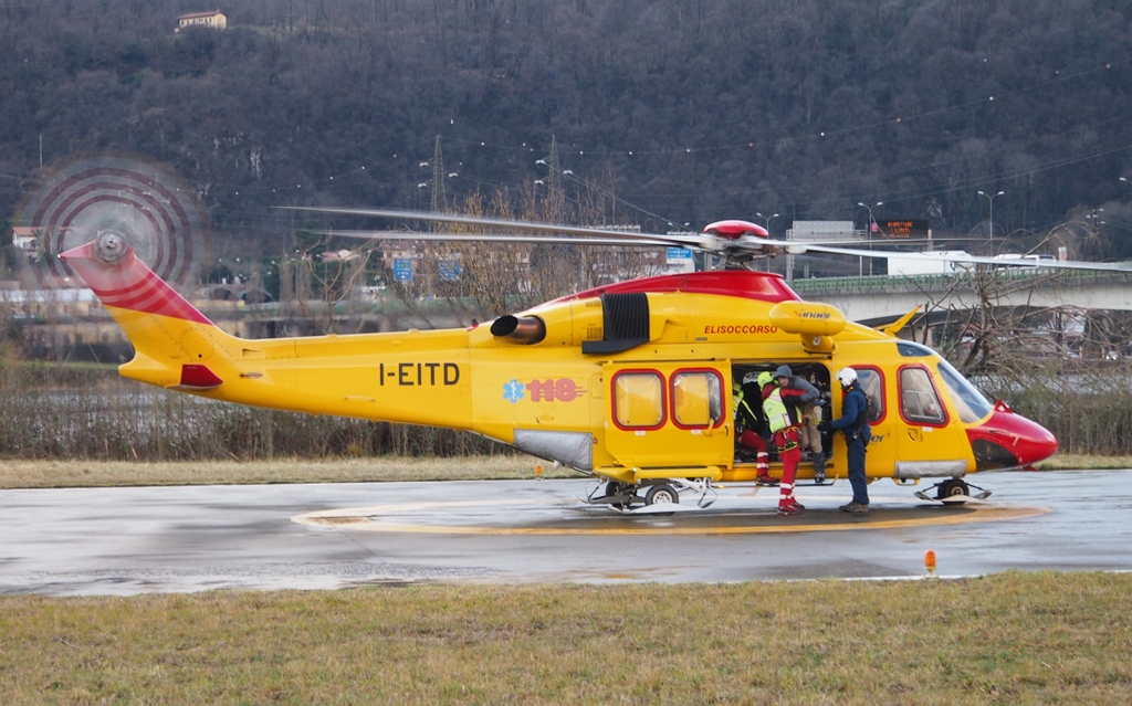 La conclusione dell’operazione di soccorso con l’elicottero “parcheggiato” al Bione