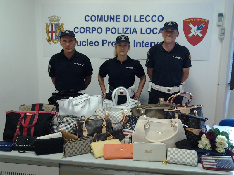 LECCO – Borselli, borsellini, borse, portafogli con svariati marchi contraffatti: Louis Vuitton, Diamond Bags, Gucci, Armani Jeans, Liu Jo, Dolce & Gabbana, Prada, Burberry, Chanel, grazie alla collaborazione dei cittadini, sono stati sequestrati dal Nucleo di Pronto Intervento della Polizia Locale di Lecco nel pomeriggio di ier, sabato.