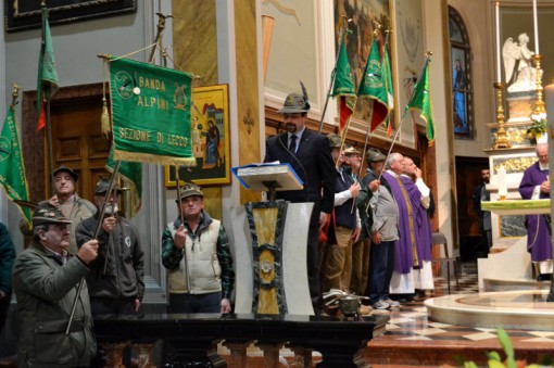 C’erano anche numerosi alpini, nella parrocchiale dedicata ai santi Giorgio e Caterina. C’era il vessillo dell’Ana di Lecco e c’erano, ai piedi dell’altare, i gagliardetti e i labari di decine di gruppi alpini del territorio. Tutti schierati per un omaggio al direttore responsabile della loro rivista trimestrale “Penna nera delle Grigne”. E per dirgli grazie. “Sì, vogliamo dirti grazie – ha detto una penna nera durante la cerimonia – per quello che hai fatto per noi in questi anni e per aver contribuito alla realizzazione del libro dedicato agli 80 anni della nostra sezione”.