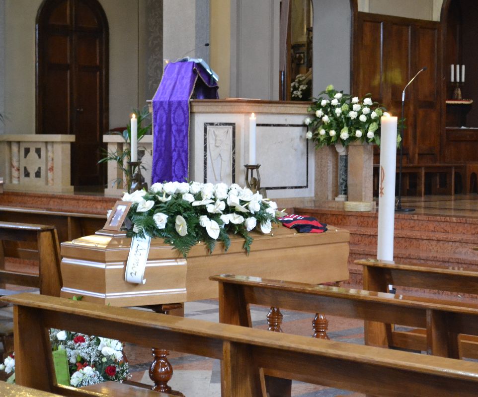 MANDELLO – Sulla bara un cuscino di rose e di anthurium bianchi. E la maglietta della squadra di calcio in cui aveva giocato. Appena fuori dalla chiesa l’annuncio funebre e la sua fotografia. Dentro, con gli amici, i genitori sconvolti dal dolore, incapaci di staccare le mani da quella bara e di sollevare lo sguardo.