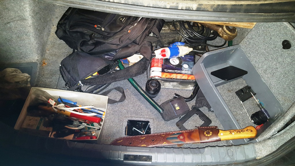 A bordo del veicolo, immediatamente ispezionato dai militari, è stato possibile recuperare consistente attrezzatura atta allo scasso, tra cui un flessibile completo di dischi per il taglio del metallo, mazze ferrate, piede di porco, pinze, cacciaviti, nonché dei passamontagna, berretti con visiera e numerosi guanti da lavoro.