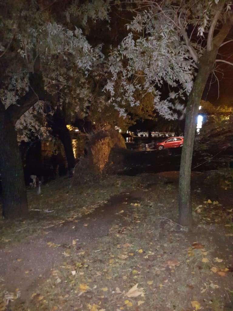 Altre 3 o 4 piante sono cadute nel parchetto della Malpensata fortunatamente il chioschetto non ha subito gravi danni e anche i tappeti elastici per i bambini sono stati risparmiati dalle piante cadute.