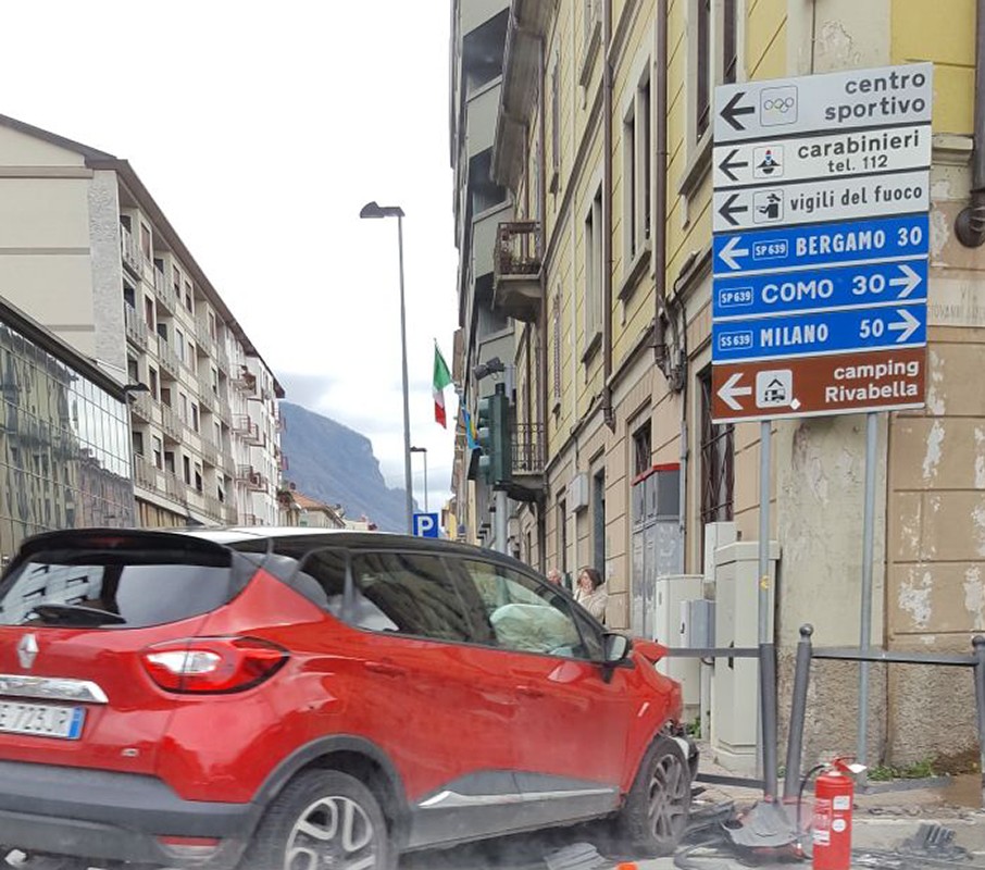 LECCO – Incidente poco dopo le 13 in via Amendola: una Renault Captur si è schiantata a bordo strada, andando ad impattare contro le protezioni che separano la carreggiata stradale dal marciapiede.