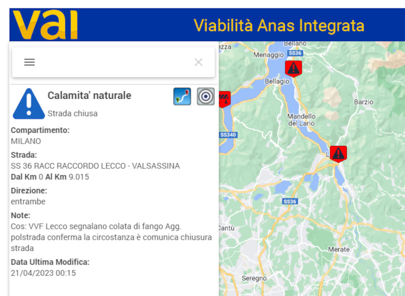 Pertanto, se la SS36 Dir resta chiusa, si prospetta una mattinata di intenso traffico sulla vecchia Lecco – Ballabio, dove è stato dirottato il traffico da Lecco per la Valsassina e viceversa.