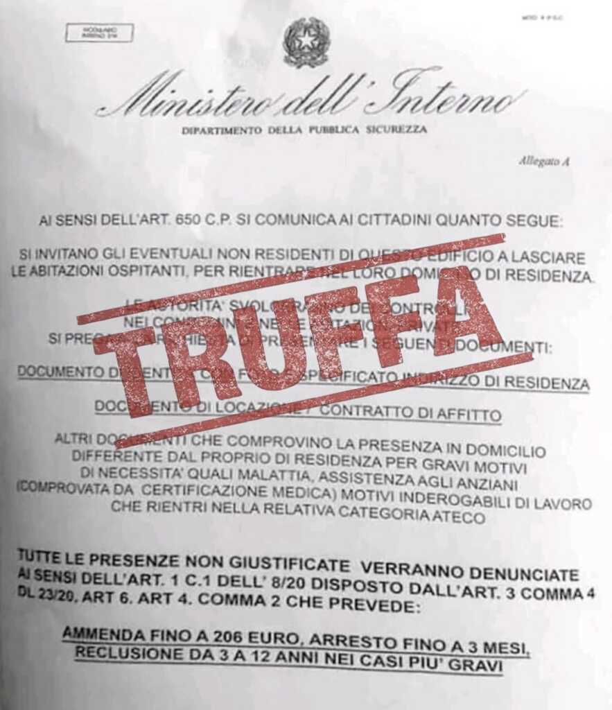 Falso volantino con il logo del Ministero dell’Interno, la Polizia: “È una truffa”