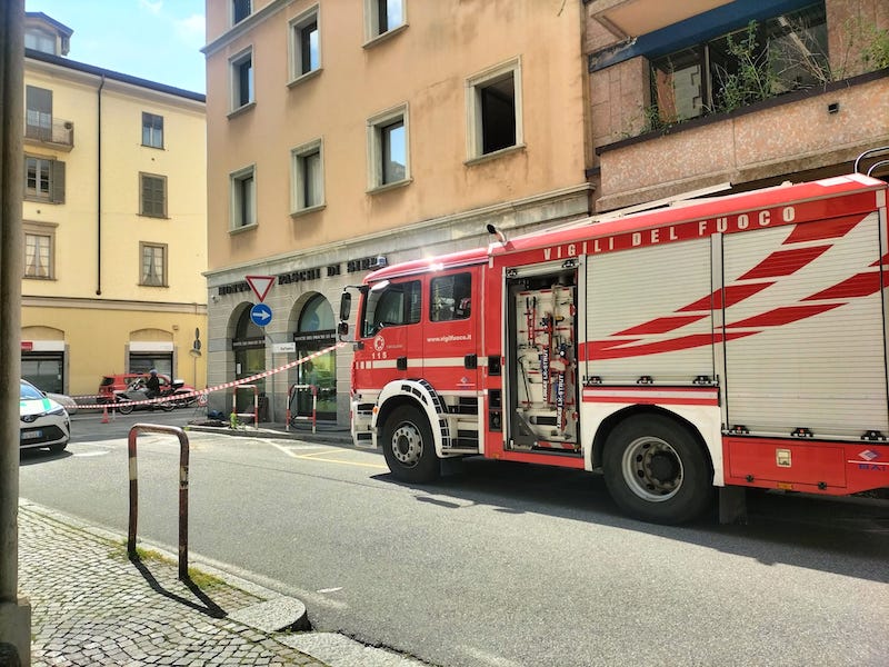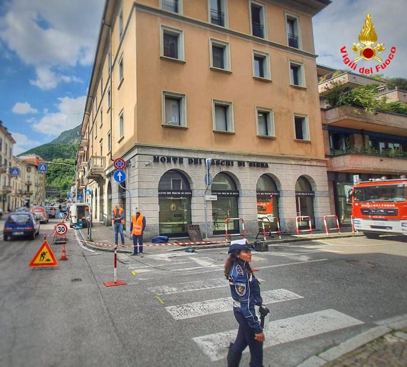 LECCO – Intervento dei Vigili del Fuoco questa mattina in via Leonardo da Vinci a causa di una fuga di gas all’altezza della banca Monte dei Paschi di Siena.