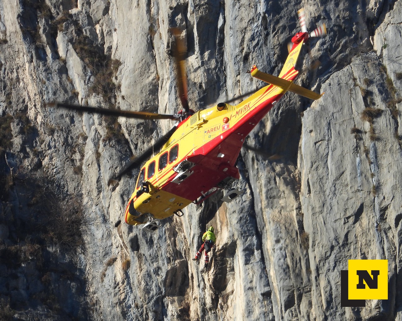 I soccorsi sono entrati in azione intorno alle 13.30. Dalla base è stato attivato l’elisoccorso, decollato da Como, che ha effettuato un primo sorvolo dell’area per valutare le condizioni dell’infortunato e le possibilità di intervento diretto. Tuttavia, la conformazione della parete del Medale ha impedito all’elicottero di operare direttamente.