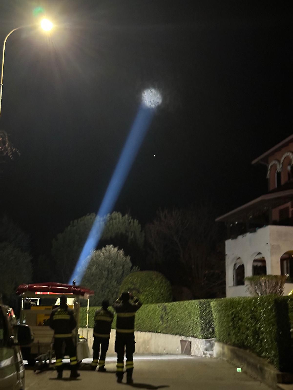 Successivamente, col calar della sera e agevolare il rientro di tutti i soccorritori, i Vigili del Fuoco hanno posizionato il proiettore di profondità in località Cereda illumimando la parete della Madale.