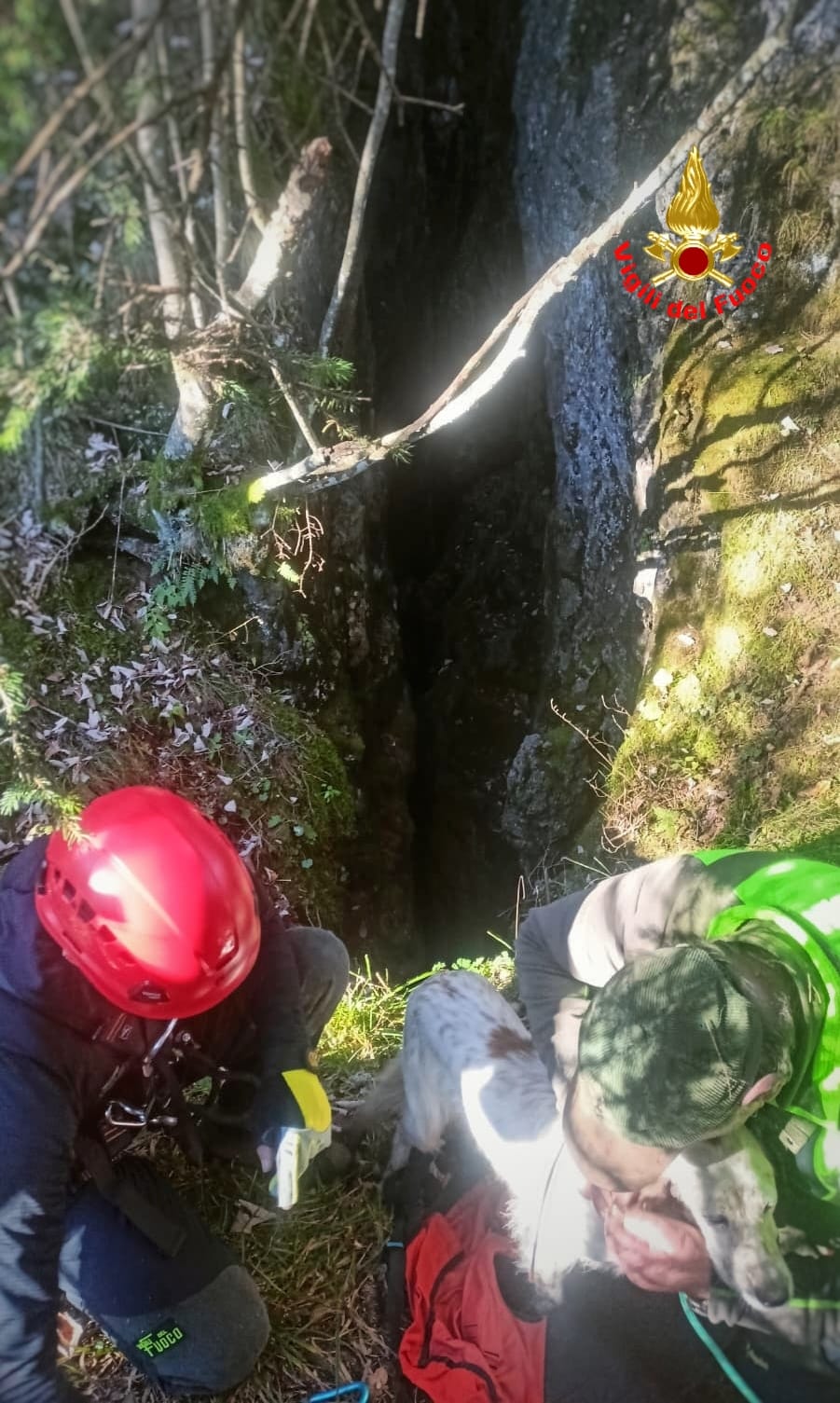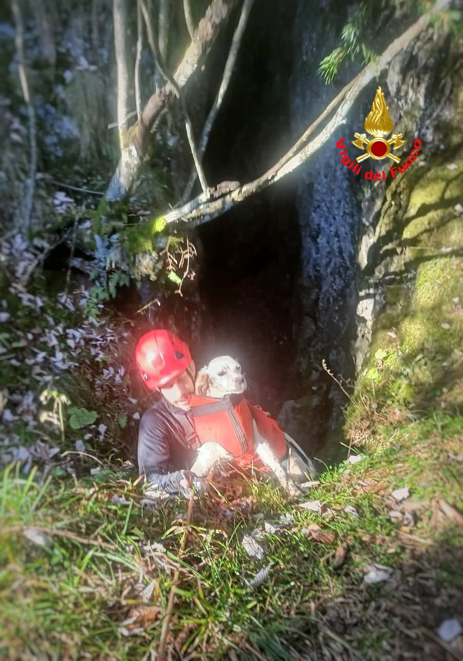 La prima chiamata è arrivata da Moggio, intorno alle 11.15, per un cane caduto in una forra – una profonda gola – a 1.500 metri di quota. E’ intervenuta la squadra Speleo Alpino Fluviale, con un vigile del fuoco che si è calato nella forra per raggiungere il cane, imbragarlo e riportarlo in superficie dove è poi stato affidato al suo proprietario. L’intervento è durato circa un paio d’ore.