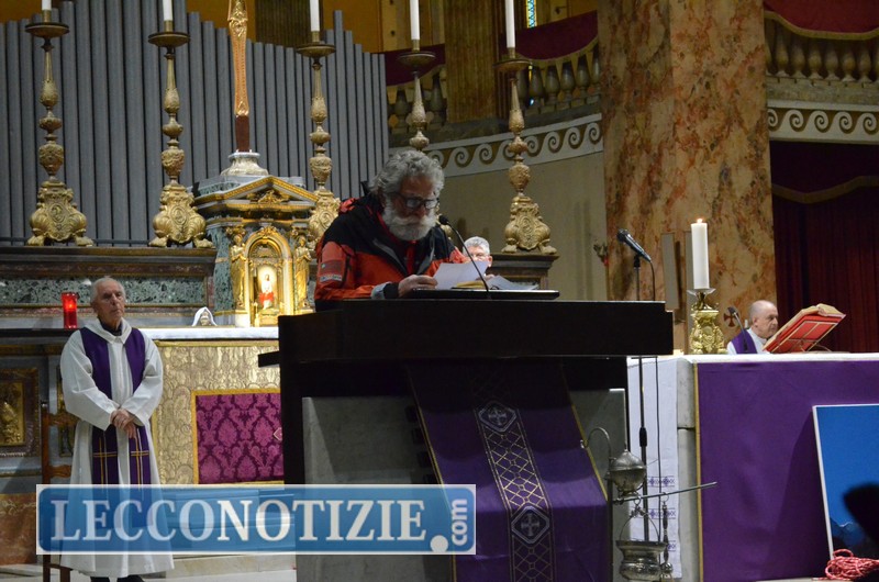 “Mi sento coinvolto in prima persona – ha detto il prevosto di Lecco Mons. Franco Cecchin durante l’omelia – venerdì quando ho saputo cos’era successo ho pianto. Per Cahrly, e per Ezio. La presenza di voi tutti dimostra che il difficile momento che stiamo vivendo oggi è un momento di consegna. Charly, con la passione della montagna – ha proseguito il prete – avevi appena scalato il Cerro Torre. Tutti facciamo fatica, abbiamo il magone grosso. Ti ricordiamo riservato, arguto, di poche parole. Non ne hai mai detta una in più. In compenso, facevi tanto, soprattutto per gli altri. Il primo pensiero, erano loro. Poi c’era la montagna. Il mio non vuole essere un elogio, ma un riconoscimento. Dicci da lassù come continuare a trasmettere la tua passione per gli altri”.