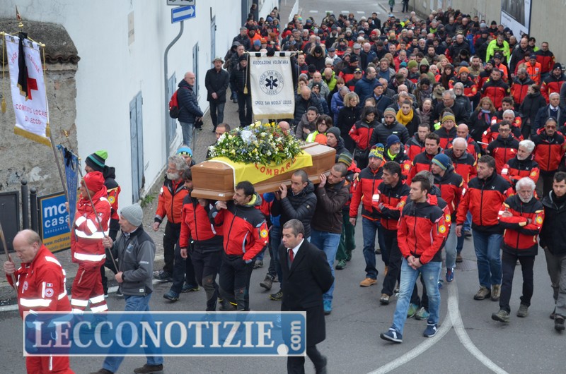 Al termine della messa viene intonato il Signore delle Cime, gli amici del Soccorso si caricano sulle spalle la bara del loro amico e collega, dietro seguono diversi gagliardetti tra i quali: Croce Rossa, Croce San Nicolò, Cai Calolzio, Cai Lecco, Ragni e Soccorso Valsassina. Il corteo si incammina fuori dalla chiesa, e prosegue fino al cimitero monumentale di Lecco. In silenzio, è il momento dell’ultimo, corale e affiatato saluto.