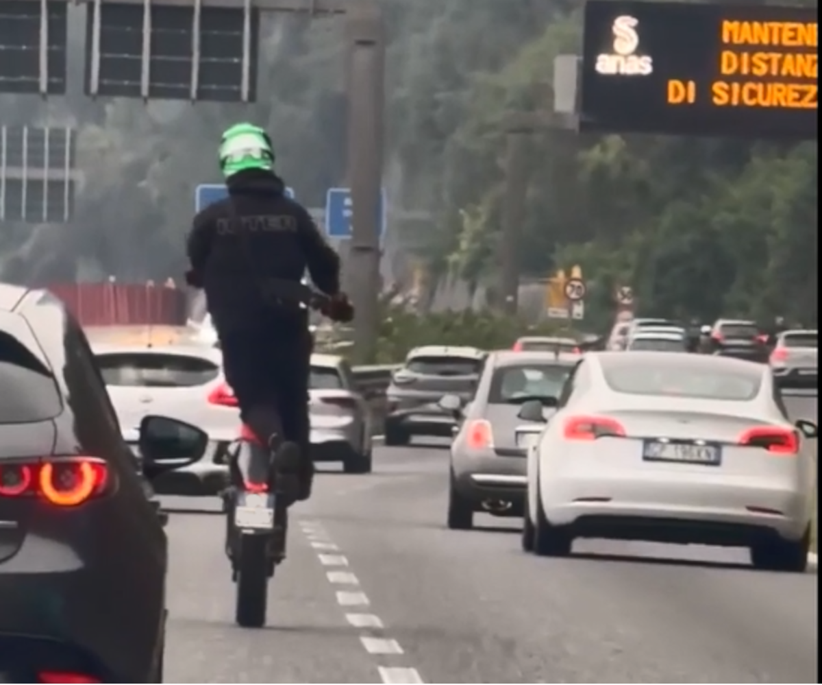 Nel video, si vede il biker che compie un’impennata con una gamba sola, mentre l’altra la tiene sulla sella. Un gesto spettacolare ma gravemente irresponsabile effettuato in barba a tutte le norme del codice della strada, ma ancor più alla propria e all’altrui sicurezza.