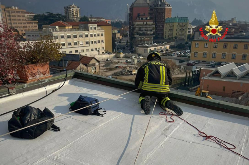 Dopo aver valutato le possibili alternative, il personale ha deciso di operare con tecnica speleo alpino fluviale (SAF) di calata dall’alto. L’operatore Saf è così riuscito ad entrare nell’appartamento da una finestra e ha aperto la porta permettendo ai sanitari di soccorrere la persona infortunata.
