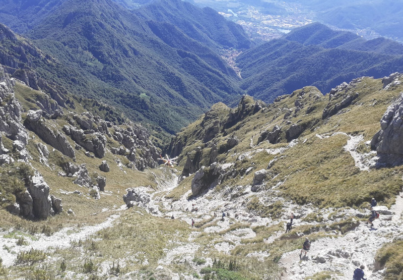 Allertati anche i volontari del Soccorso Alpino della Stazione di Lecco, qualora fosse servito un supporto via terra, data anche la presenza di forte vento che avrebbe potuto rendere difficoltoso il recupero del ferito con l’elicottero.