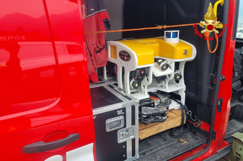 Terzo giorno di ricerche, con grande impegno dei soccorritori coordinati dalla Guardia Costiera. Da oggi si sta utilizzando anche il Remotely Operated Vehicle (ROV), arrivato dalla Sardegna. Un robot subacqueo a comando remoto in grado di esplorare profondità considerevoli, utile nei casi in cui le condizioni non consentano immersioni in sicurezza.