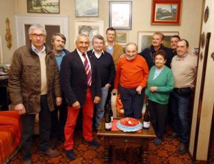 Contrariamente a quanto accade in casi analoghi, i nostri incontri, che all’inizio avvenivano ogni 5/10 anni, in seguito si sono fatti più frequenti, per poi diventare un appuntamento annuale fisso che precedeva il Santo Natale. Ci trovavamo al bar Manzoni per radunarci e raggiungere insieme l’abitazione del Maestro in viale Dante 15; fino a qualche anno fa per prelevarlo e portarlo con noi alla cena natalizia, ultimamente, per brindare insieme in casa sua, considerando le condizioni di salute che gli impedivano una completa autonomia.