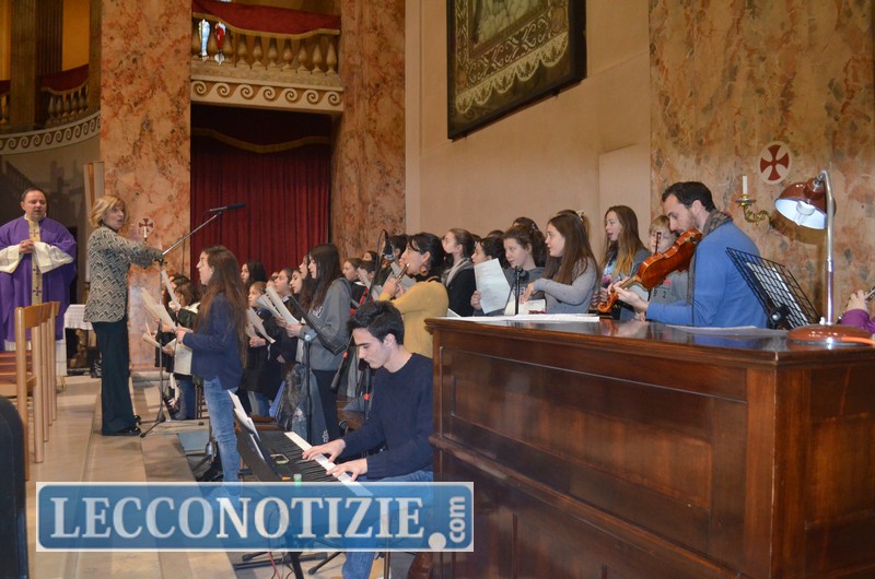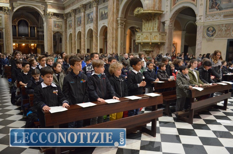 Nella sua omelia Monsignor Delpini ha raccontato agli alunni di aver incontrato per le vie della città una ragazza in cerca di casa a Lecco: “Il suo nome è ‘Speranza Improbabile’, è un’amica di tutti. Cerca casa qui a Lecco e percorre la città cantando liete canzoni, ma la gente che ascolta, invece che unirsi a lei, considera il suo comportamento poco equilibrato. Si aggira sorridendo, è affettuosa con tutti, si ferma a parlare con bambini e mendicanti. Ma la gente la circonda di sospetto invece di lasciarsi contagiare dal suo sorriso. ‘Speranza Improbabile’ raccomanda una strada per raggiungere la felicità, ma la gente non crede. Ragazzi, cercate di incontrare questa ‘Speranza Improbabile’ e imparate a riconoscerla. Ricordatevi che Dio ascolta la preghiera e la esaudisce. Ecco il segno che uno ha accolto a casa sua la ‘Speranza Improbabile’: incomincia a pregare”.