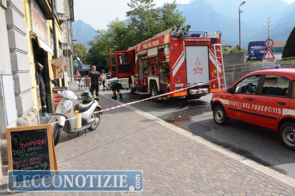 Immediata la chiamata ai soccorsi, con i Vigili del Fuoco di Lecco che sono giunti sul posto con una autobotte,. I pompieri, per poter accedere al locale hanno dovuto sfondare la vetrina quindi, dotati di maschere, bombole e idrante sono riusciti a spegnere il rogo. Sul posto anche una pattuglia della Polizia Locale. Inevitabile qualche disagio alla viabilità del centro città.